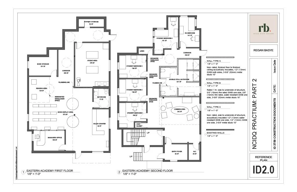 I completed the Design Practicum for my final for Construction Documents. I transformed a historic three- story residence into a fully accessible mixed use space featuring a bookstore, pottery studio, and student housing, while preserving its original character.